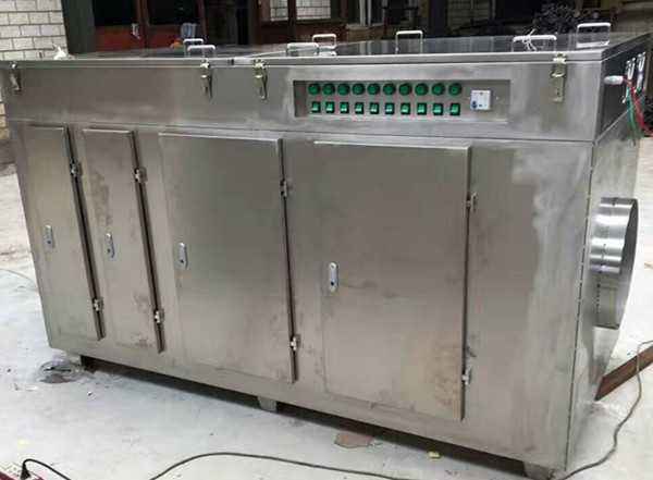 2、而后進入低溫等離子凈化裝置降解污染物,利用等離子產(chǎn)生的活性粒子和廢氣中的污染物作用,使污染物分子在很短的時間內(nèi)發(fā)生分解,并發(fā)生后續(xù)的各種反應(yīng)以達到降解污染物的目的;